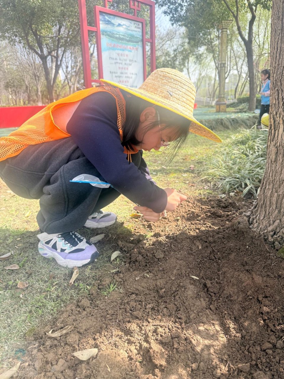 认真观察花草的孩子们