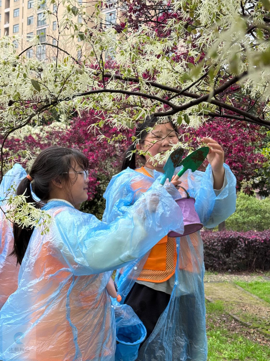 • 认真观察花草的孩子们