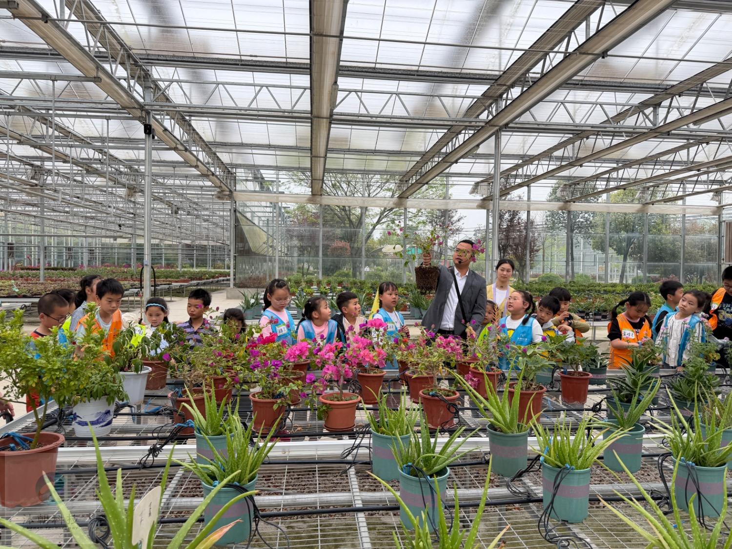认真观察花草的孩子们
